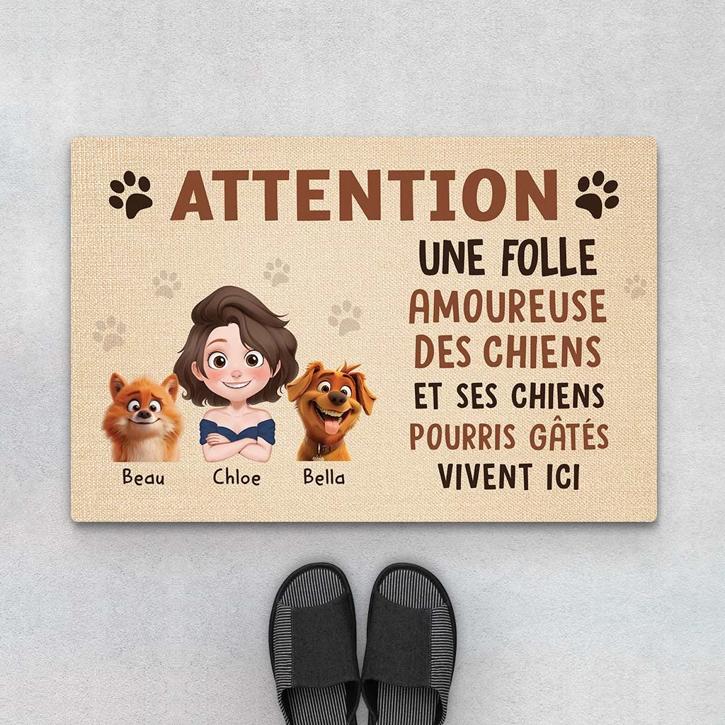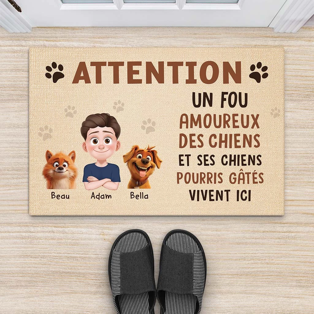 Attention Design Cartoon – Cadeau Personnalisé | Paillasson Pour Amoureux Des Chiens