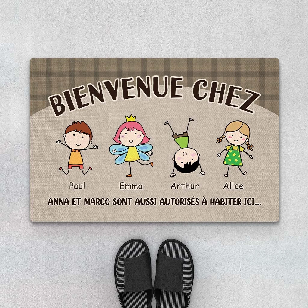 Bienvenue Chez Des Petits Anges – Cadeau Personnalisé | Paillasson Pour Famille
