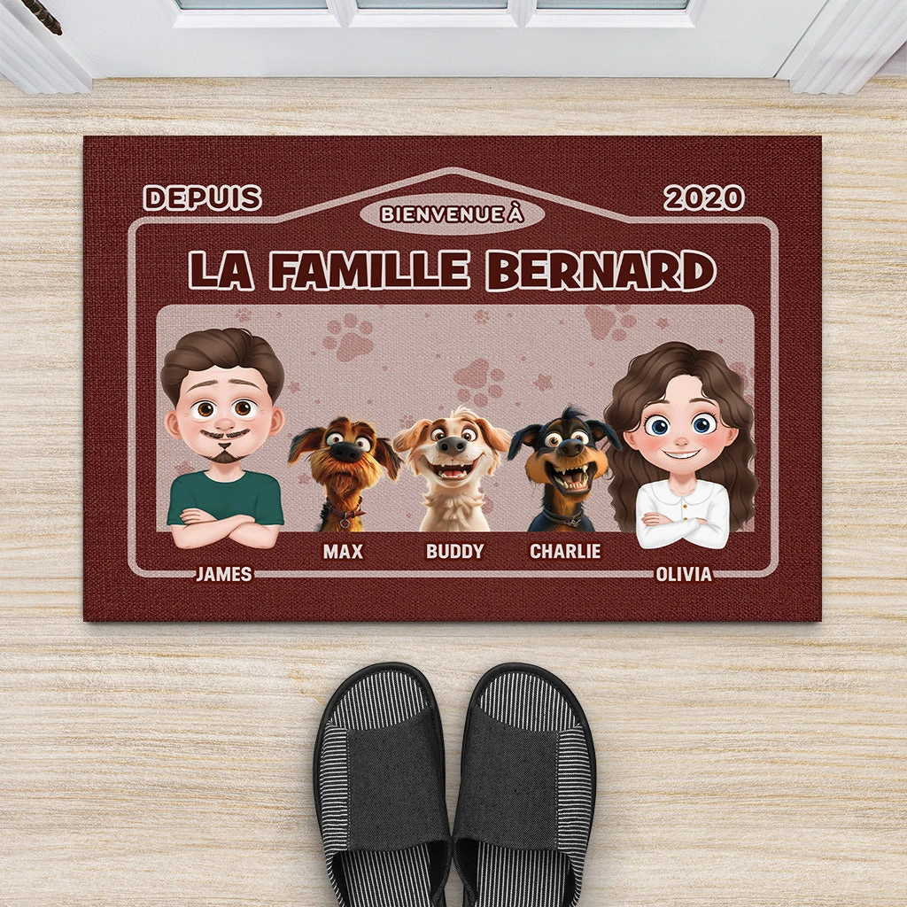 Bienvenue Chez Nous Depuis Design Cartoon – Cadeau Personnalisé | Paillasson Pour Amoureux Des Chiens