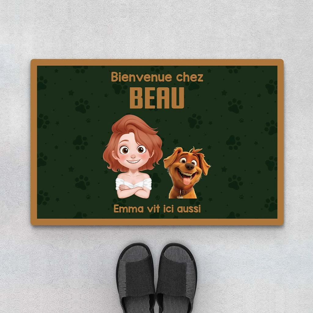 Bienvenue Chez Nous Version Cartoon – Cadeau Personnalisé |Paillasson Pour Amoureux Des Chiens