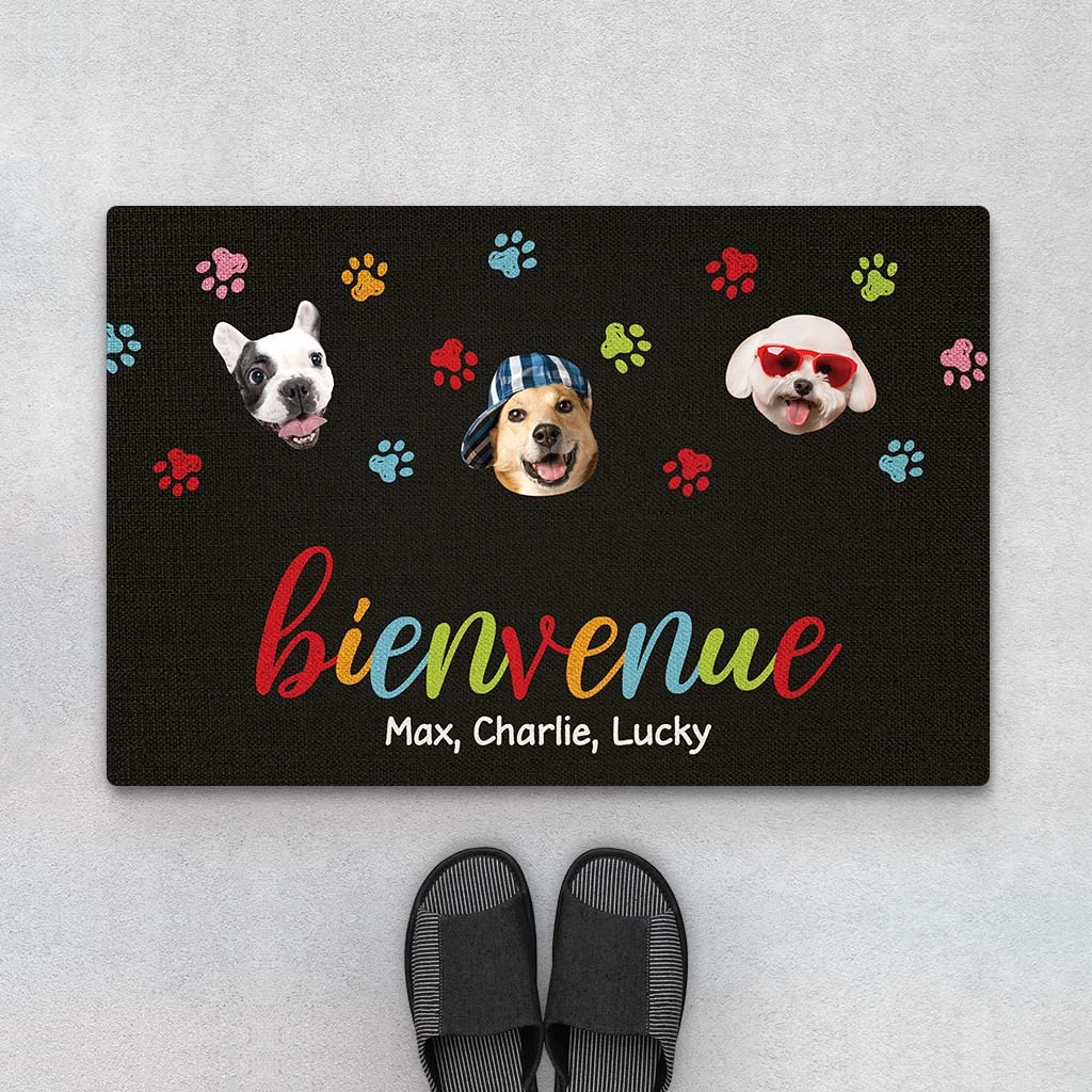 Bienvenue Version Visages De Chiens – Cadeau Personnalisé | Paillasson Pour Amoureux Des Animaux
