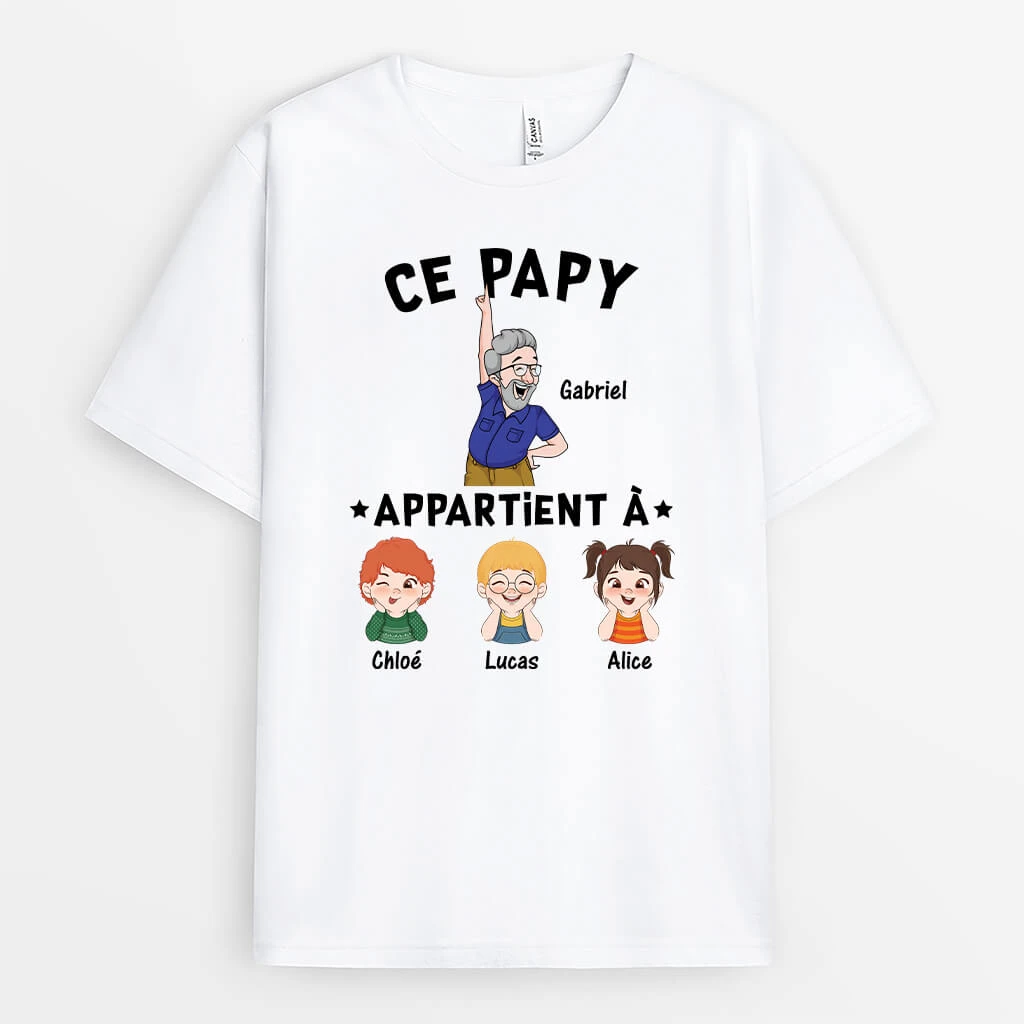 Ce Papy Appartient À Ces Petits-Enfants Adorables – Cadeau Personnalisé | T-Shirt Pour Papy