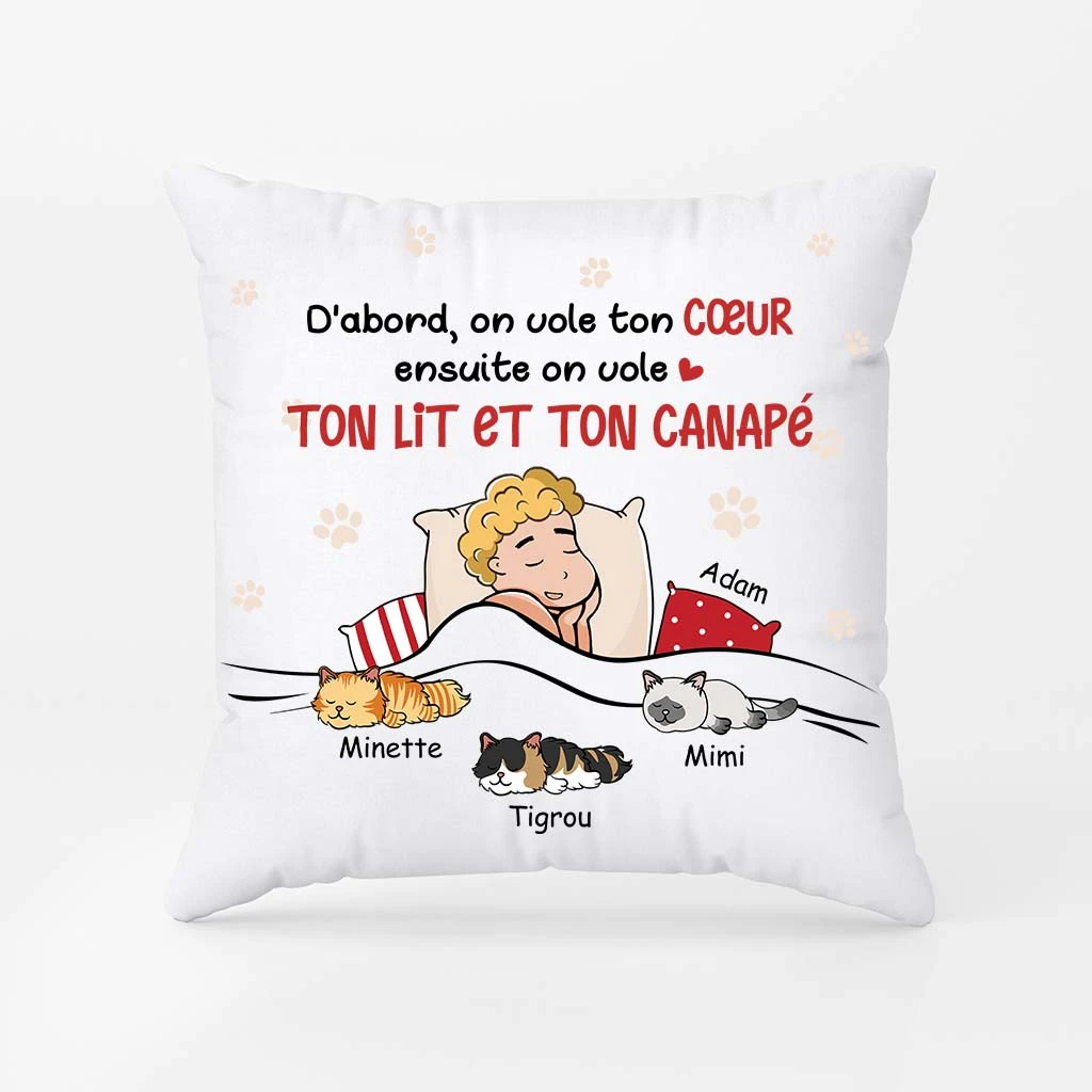 D’Abord On Vole Ton Cœur Version Chats – Cadeau Personnalisé | Coussin Pour Amoureux Des Animaux