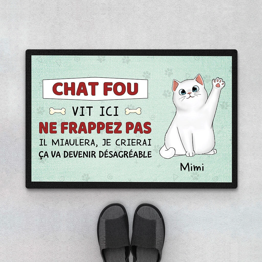 Des Chats Fous Vivent Ici – Cadeau Personnalisé | Paillasson Pour Amoureux Des Animaux