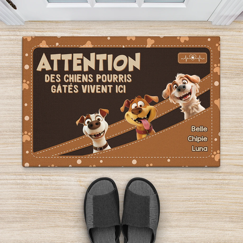 Des Chiens Pourris Gâtés Vivent Ici Design Cuir – Cadeau Personnalisé | Paillasson Pour Amoureux Des Animaux
