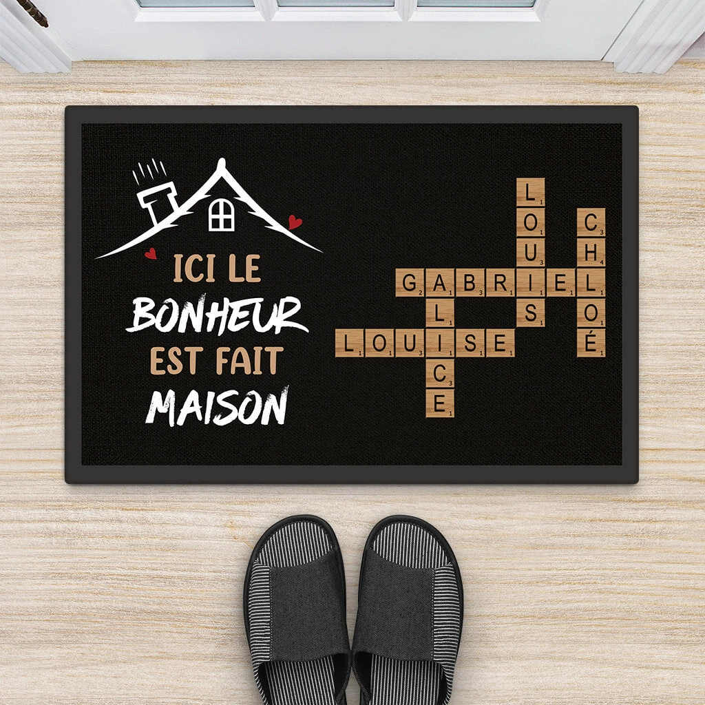 Ici Le Bonheur Est Fait Maison – Cadeau Personnalisé | Paillasson Pour Famille