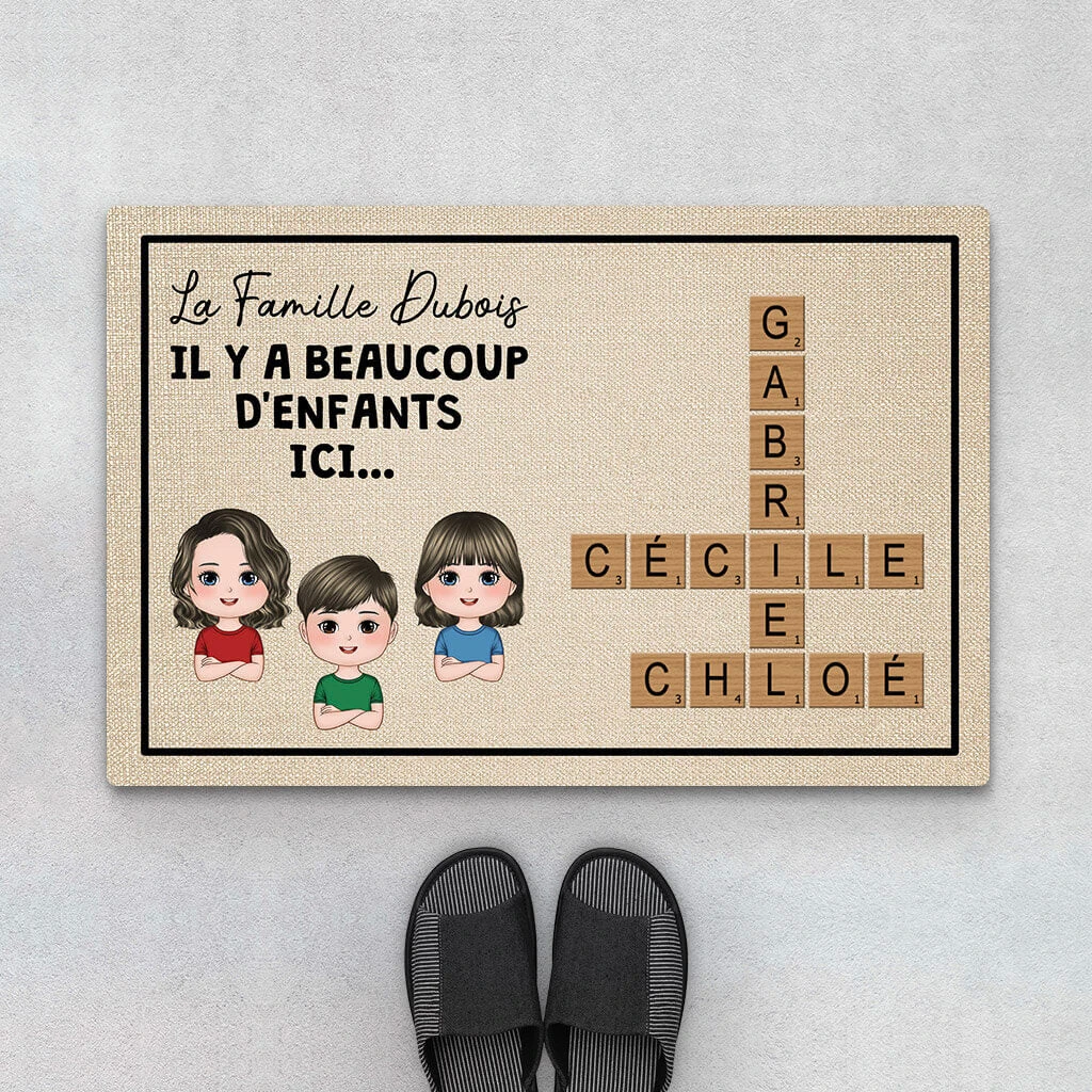 Il Y A Plein D’Enfants Ici Avec Mots Croisés – Cadeau Personnalisé | Paillasson Pour Famille