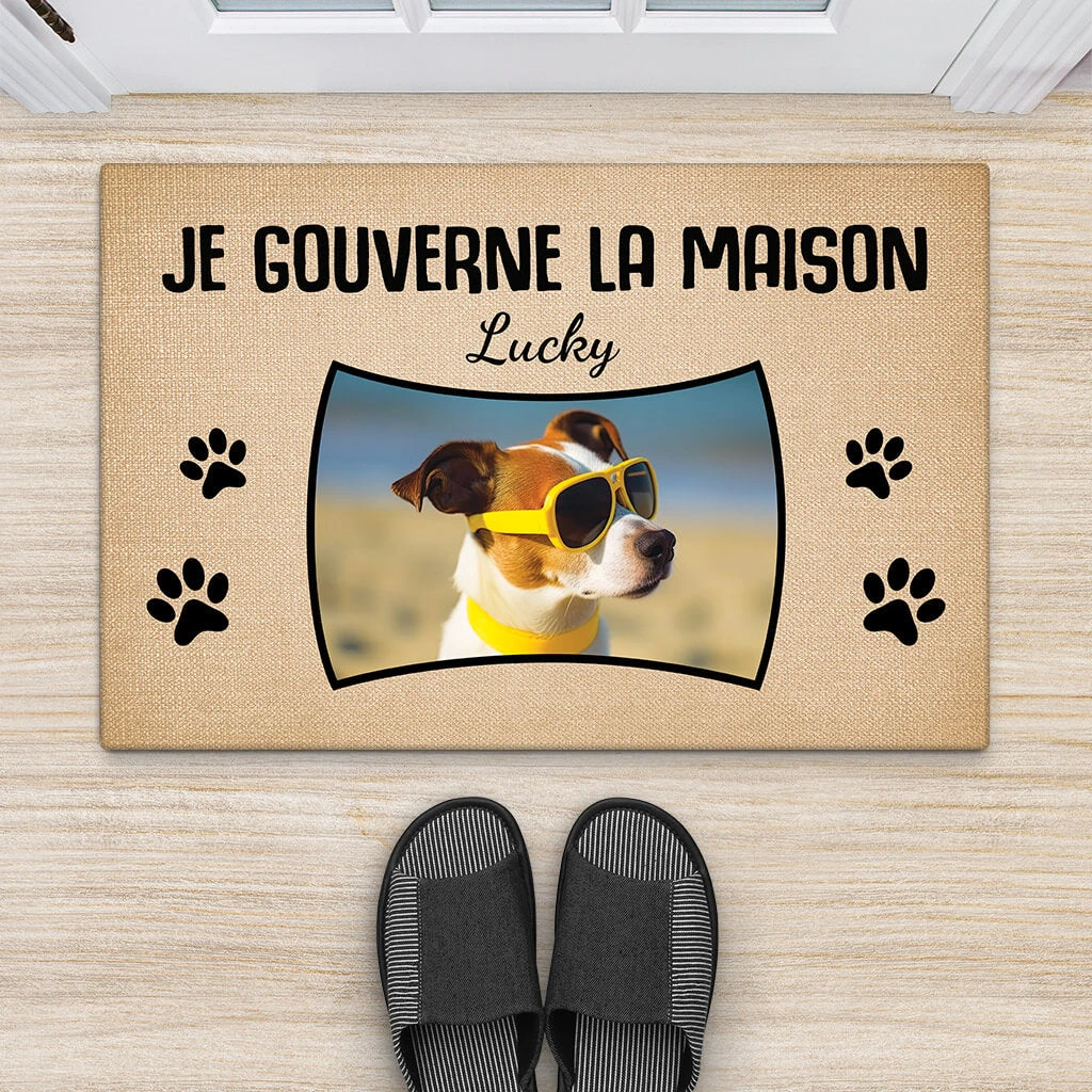 Je Gouverne La Maison Avec Photo Du Chien – Cadeau Personnalisé | Paillasson Pour Amoureux Des Chiens