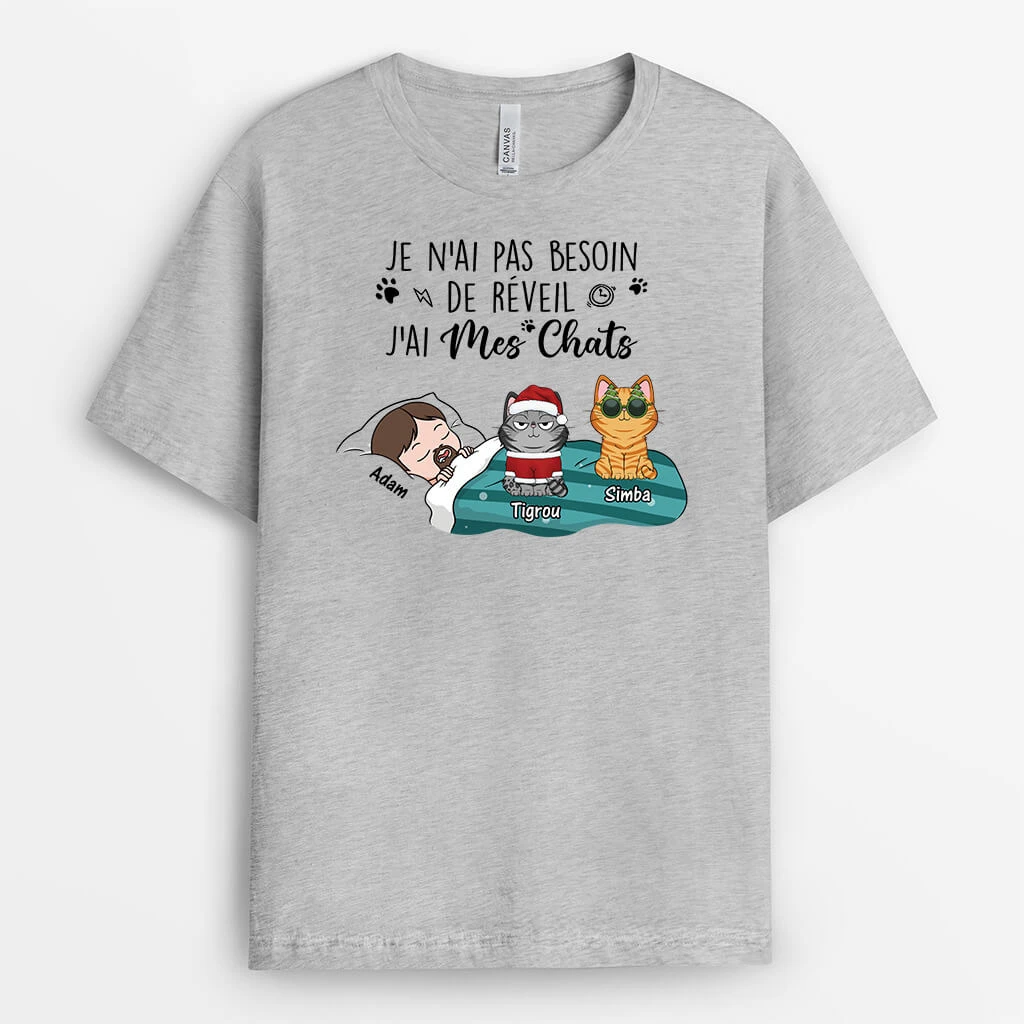 Je N’ai Pas Besoin De Réveil Avec Chats Paresseux – Cadeau Personnalisé | T-shirt Pour Amoureux Des Animaux