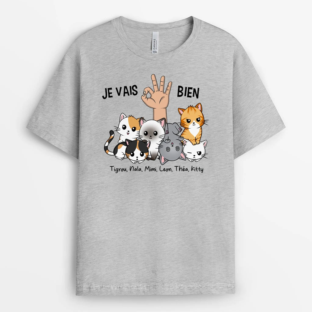 Je Vais Bien Avec Les Chats Mignons – Tee Shirt Personnalisé Chat