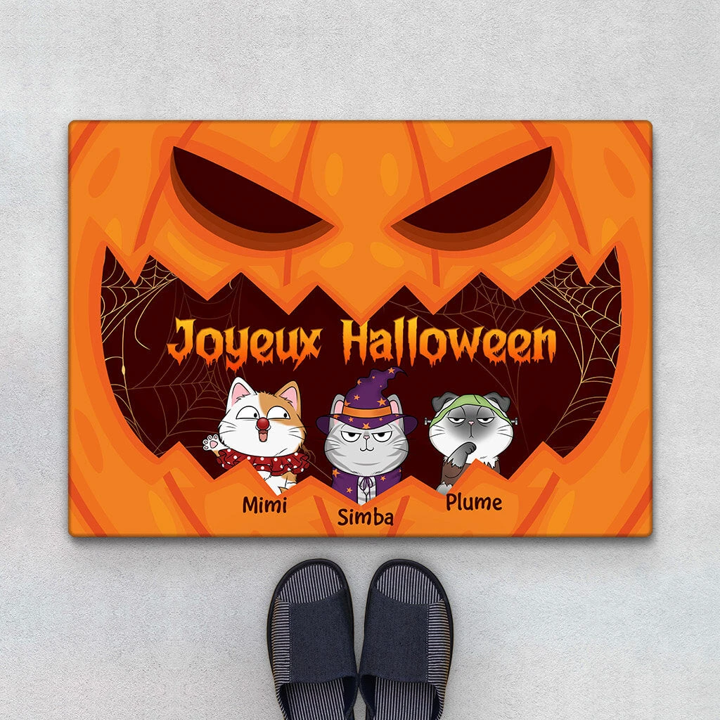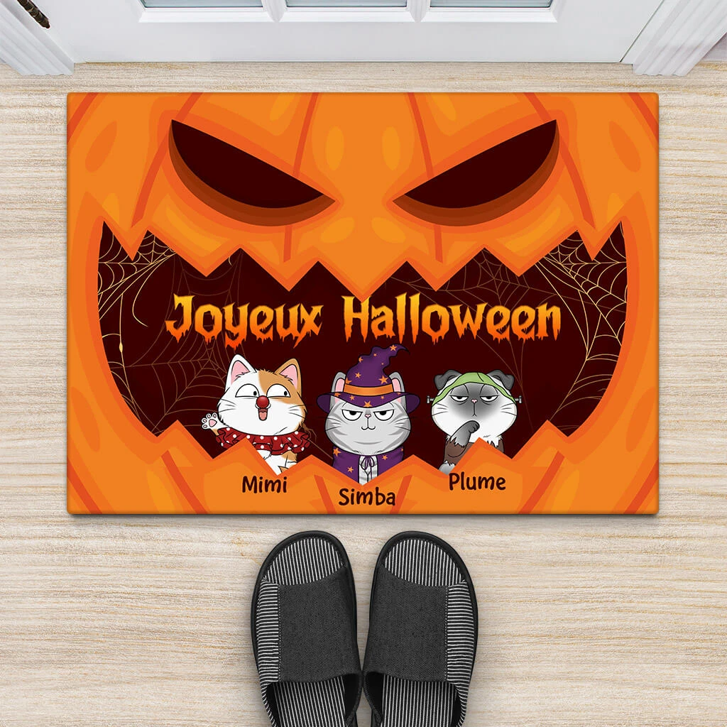 Joyeux Halloween Chat Citrouille – Cadeau Personnalisé | Paillasson Pour Amoureux Des Animaux