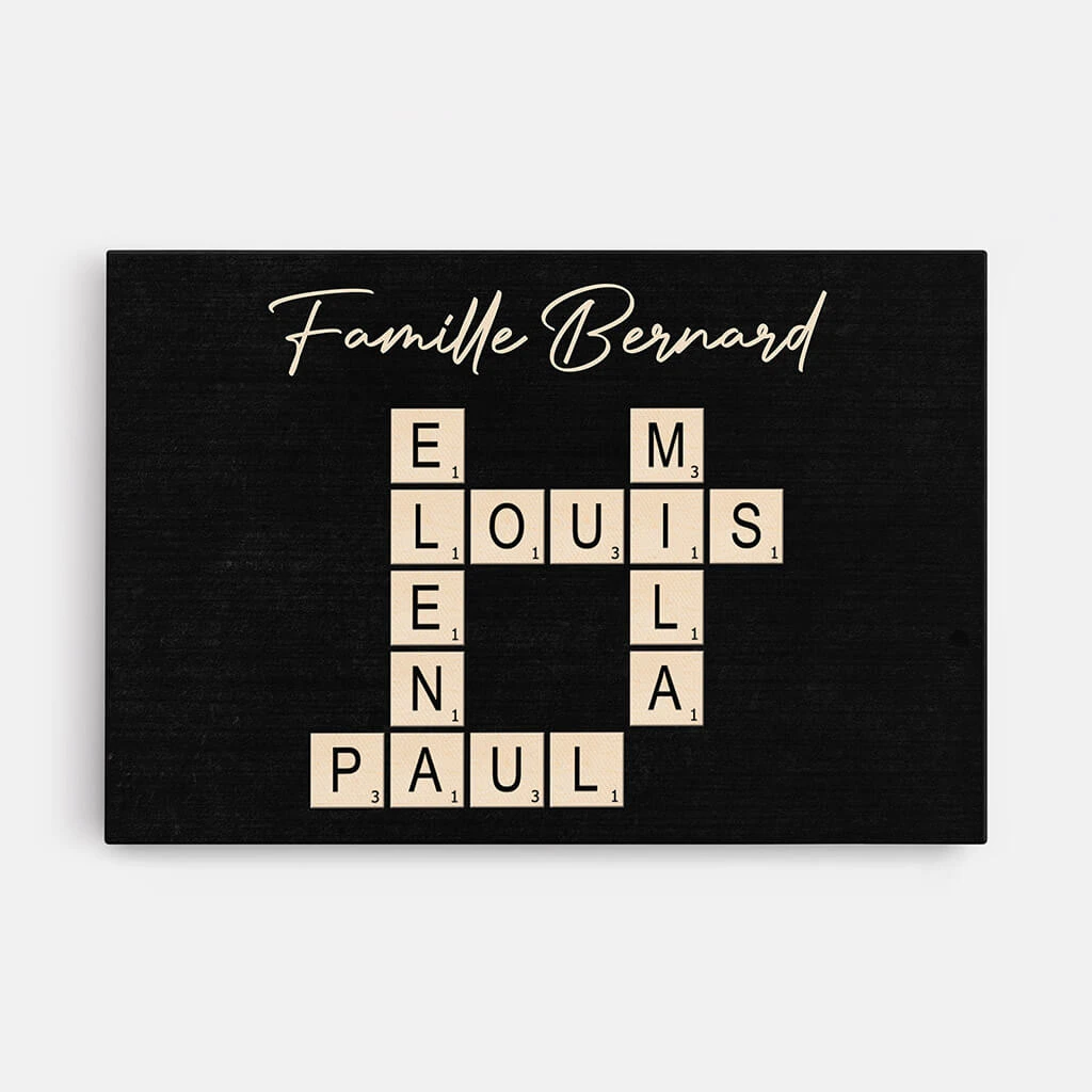 La Famille Avec Mots Croisés Du Fond Noir – Cadeau Personnalisé | Toile Pour Famille