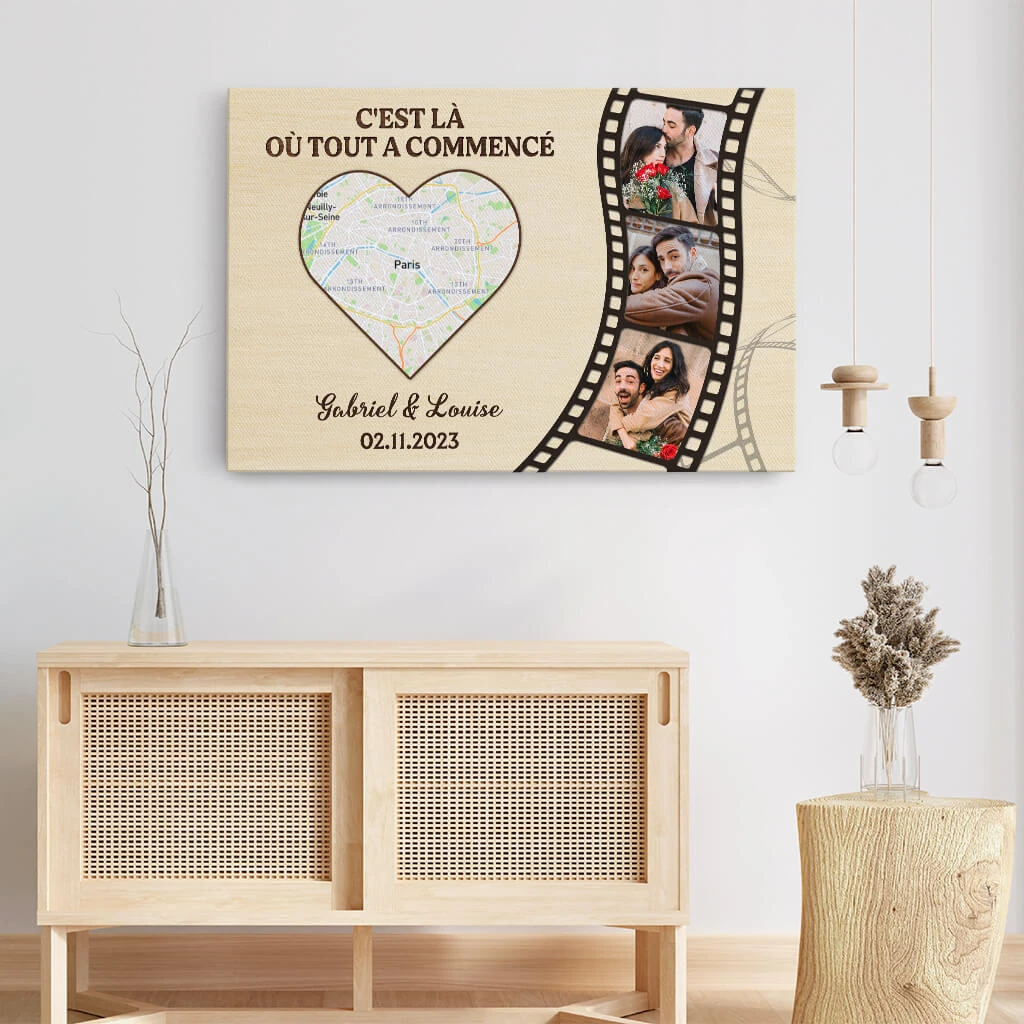 Là Où Tout A Commencé Version Carte Et Photos – Cadeau Personnalisé | Toile Pour Couple