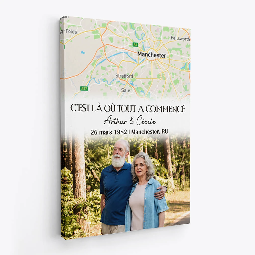 Là Où Tout A Commencé Version Carte Et Photos Vintage – Cadeau Personnalisé | Toile Pour Couple