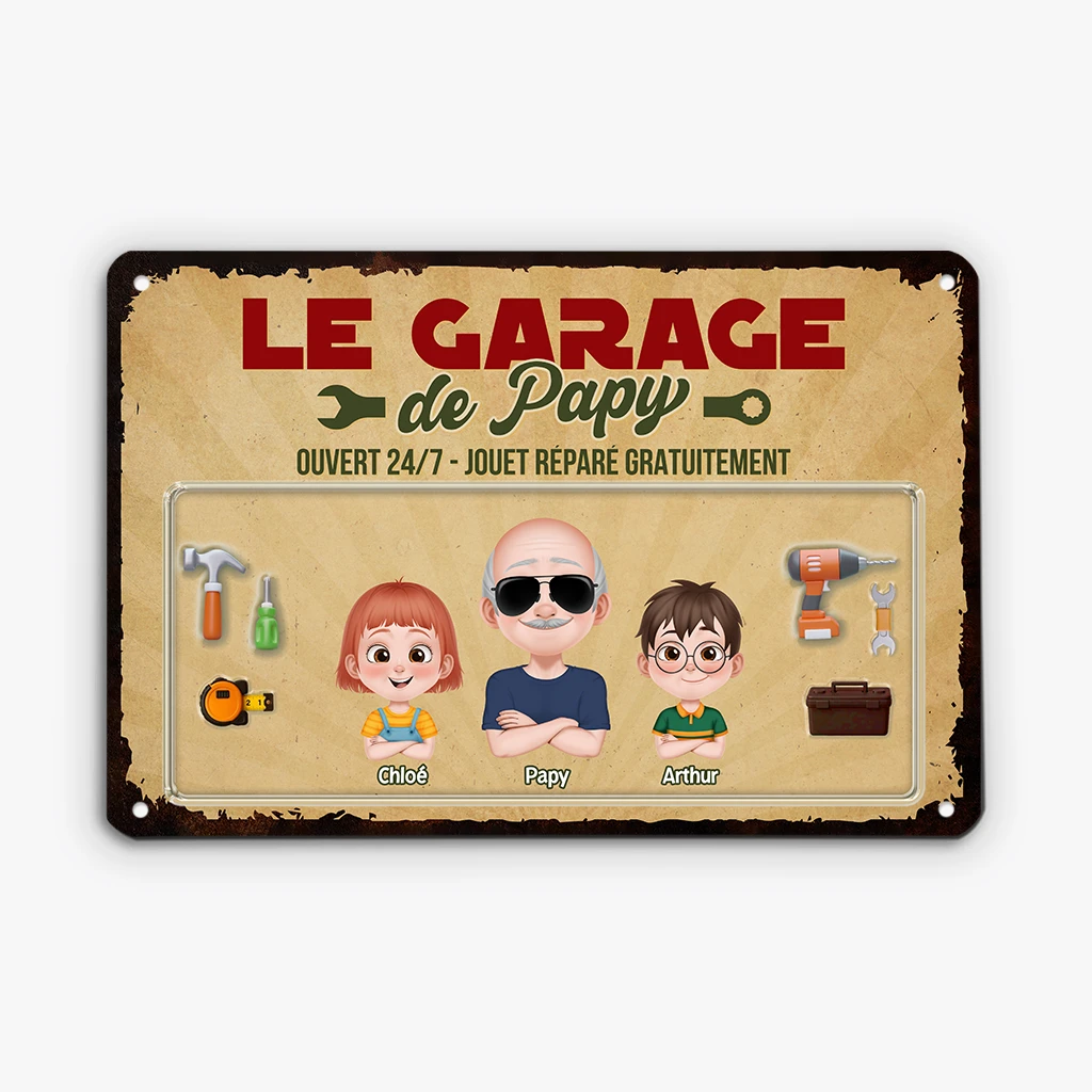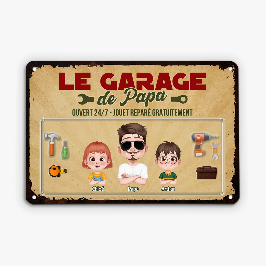 Le Garage À Papa Vintage Design Cartoon – Plaque En Métal Personnalisée Humour