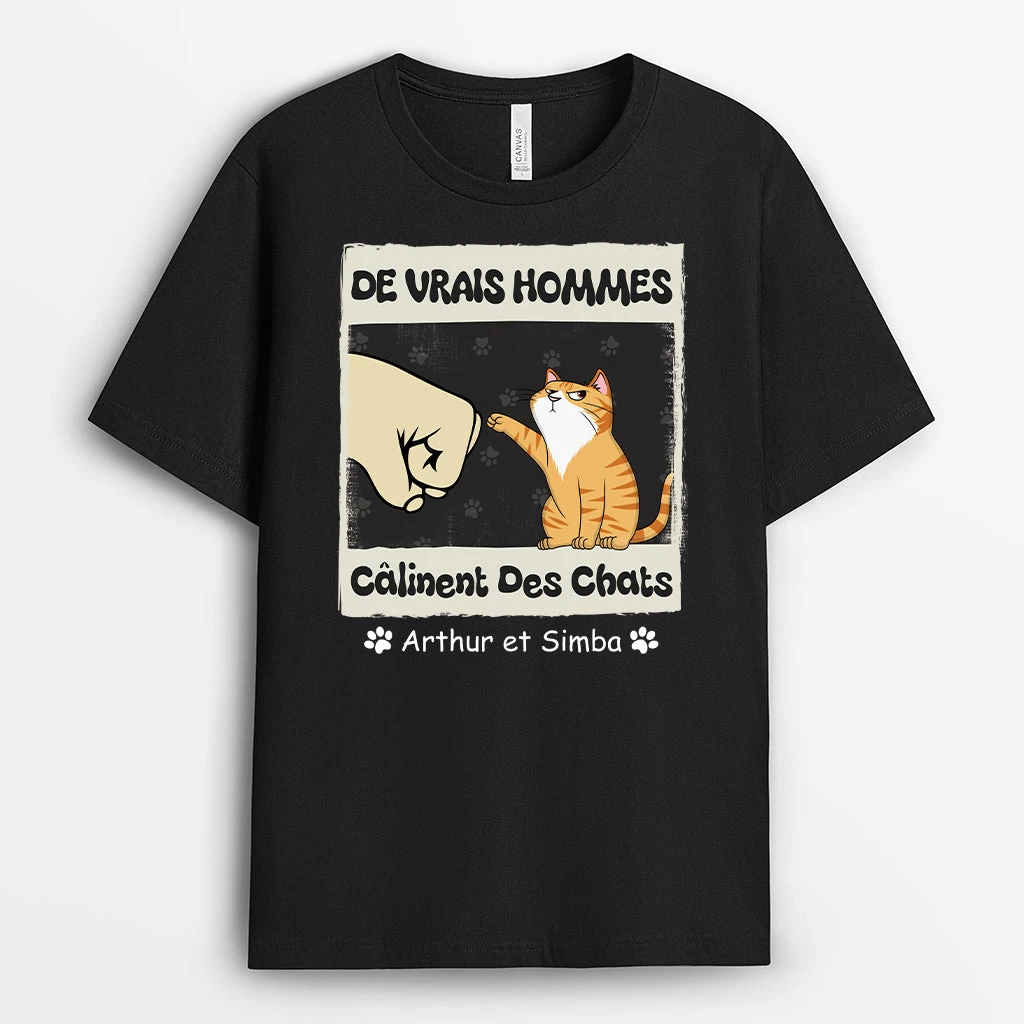 Les Vrais Hommes Câlinent Des Chats Avec Poings – Tee Shirt Personnalisé Chat