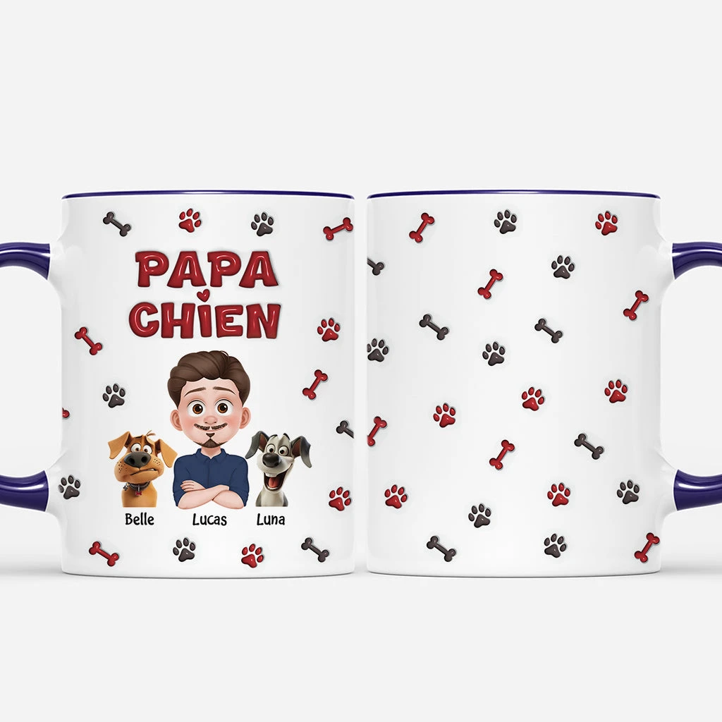 Maman Chien Design Cartoon Version Rouge Et Noir 3D – Cadeau Personnalisé | Mug Pour Amoureux Des Chiens