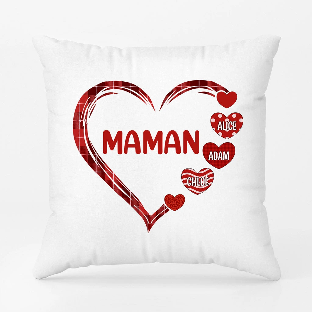 Maman Et Les Coeurs Rouges – Coussin Prénom Personnalisé