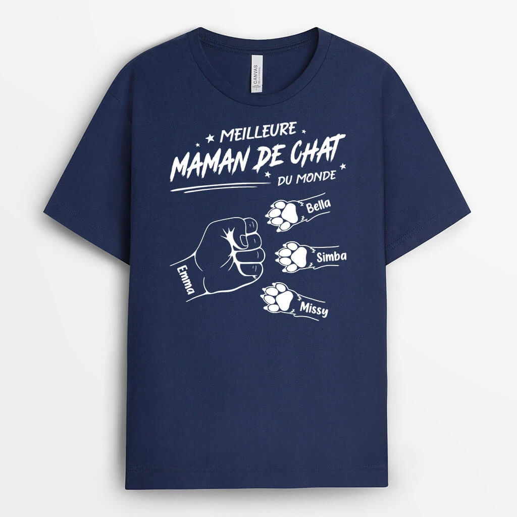 Meilleur Papa Chat/ Meilleure Maman Chat Avec Bosses De Poing De Chats – Cadeau Personnalisé | T-shirt Pour Amoureux Des Animaux