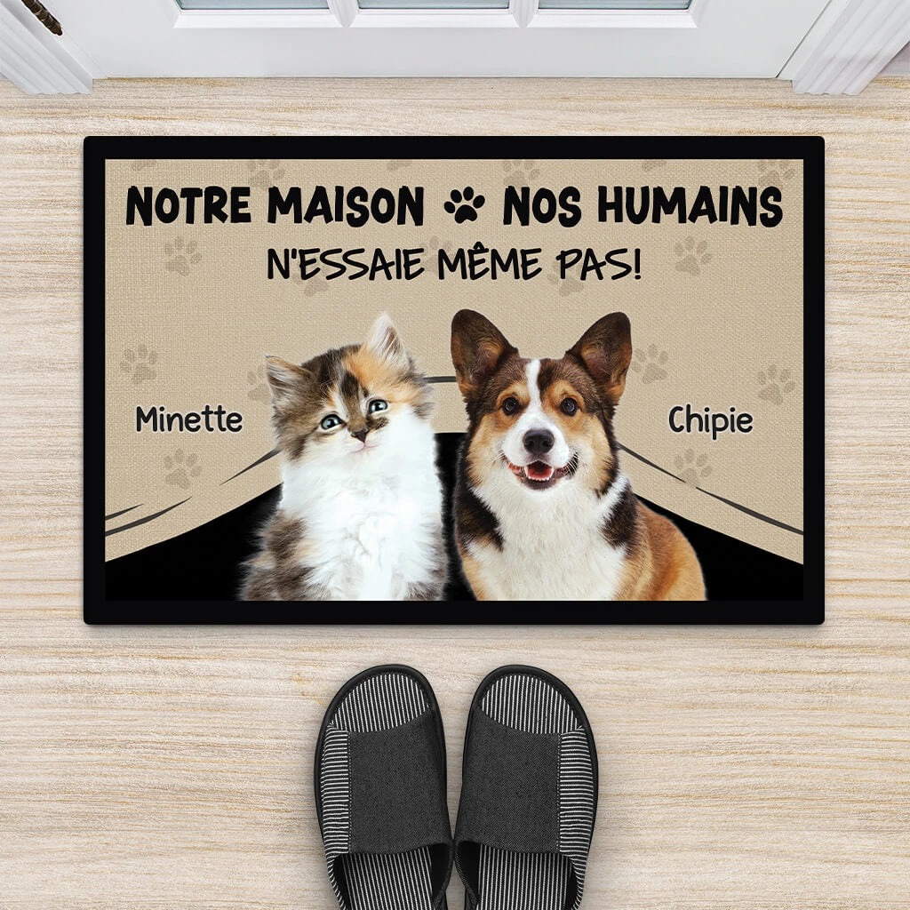 Notre Maison – Nos Humains Avec Photo – Cadeau Personnalisé | Paillasson Pour Amoureux Des Animaux