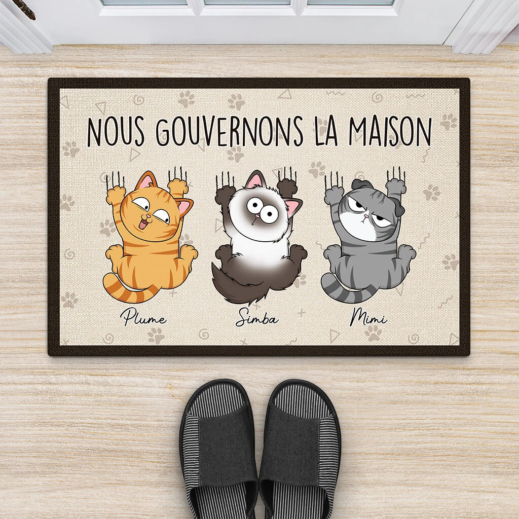 Nous Gouvernons La Maison Version Chats Espiègles – Cadeau Personnalisé | Paillasson Pour Amoureux Des Animaux