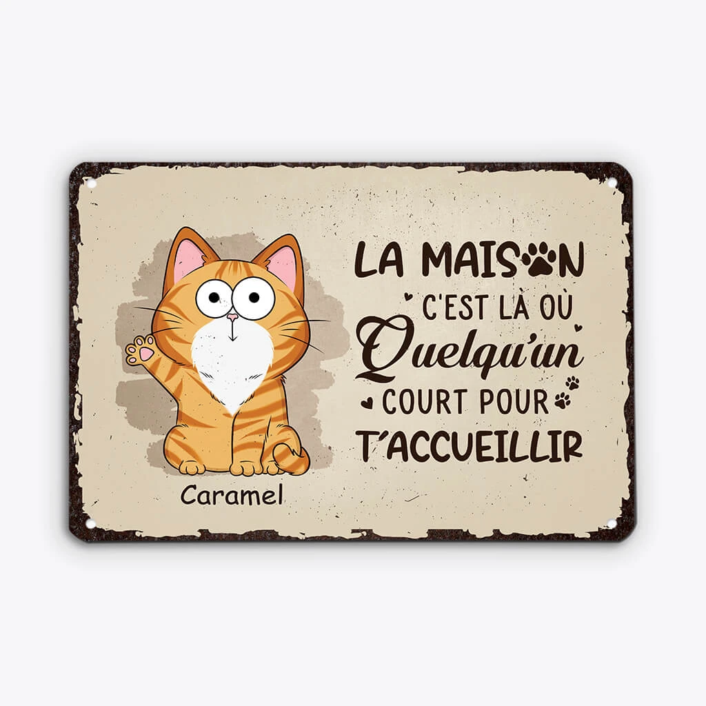 Paillasson La Maison Où Quelqu’un Court Pour T’Accueillir Personnalisé Avec Chat