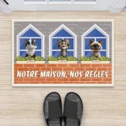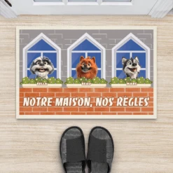 Notre Maison Nos Humains Version Cartoon – Cadeau Personnalisé | Paillasson Pour Amoureux Des Chiens