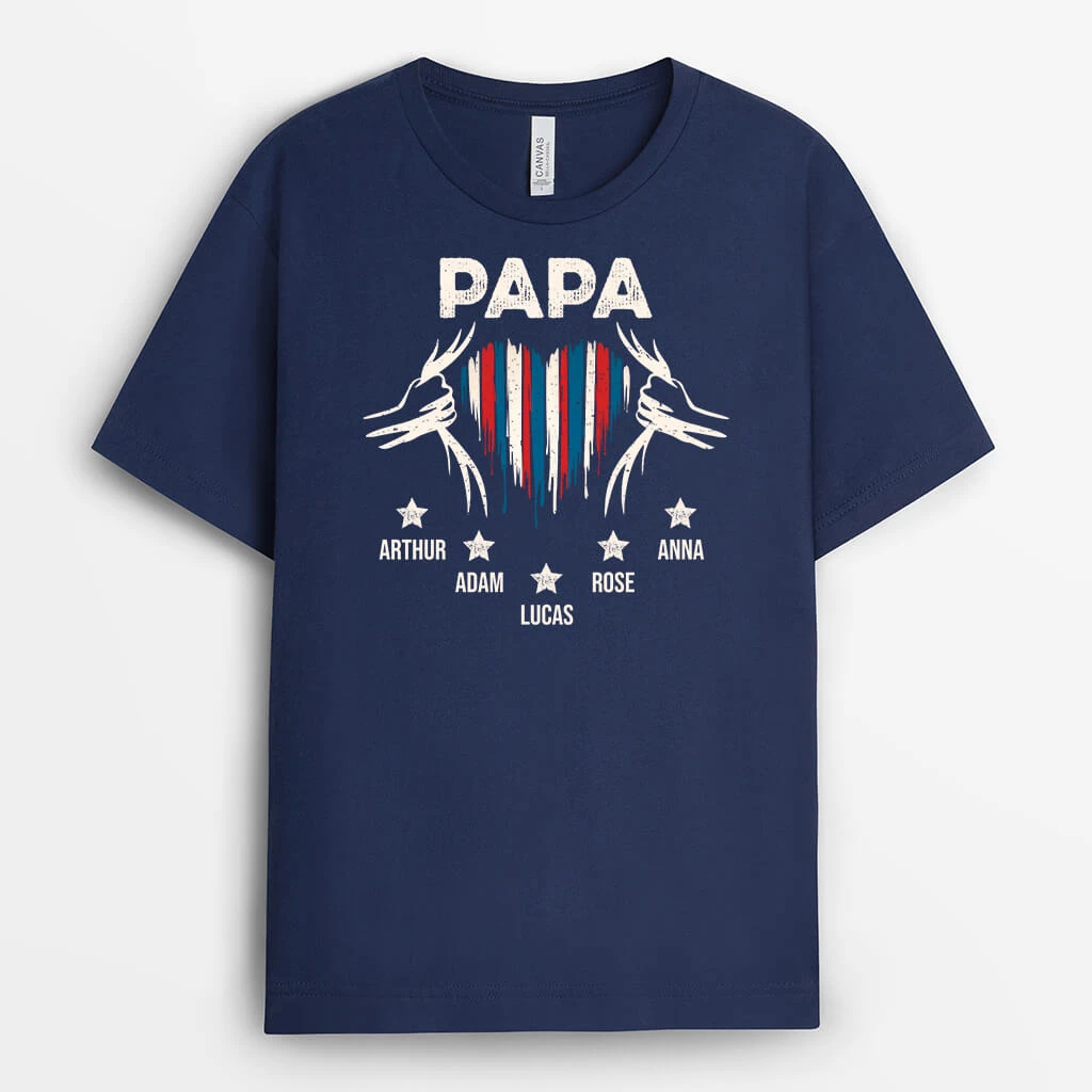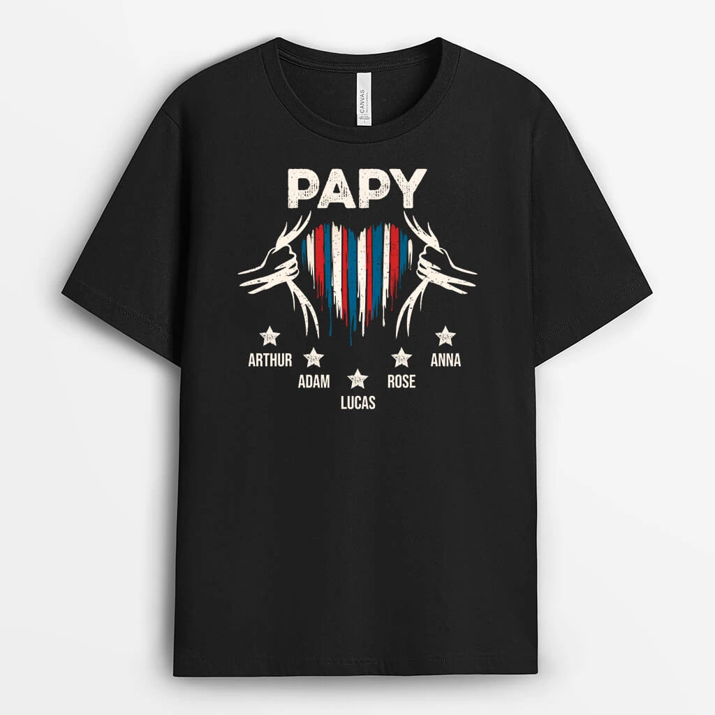 Papy Coeur Avec Couleur De La France – Cadeau Personnalisé | T-shirt Pour Homme