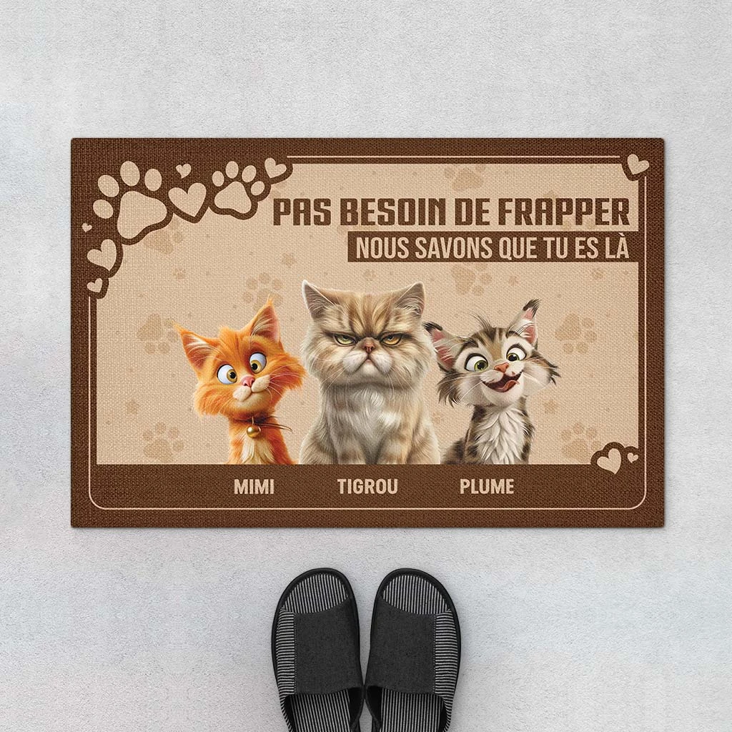 Pas Besoin De Frapper Design Cartoon – Cadeau Personnalisé | Paillasson Pour Amoureux Des Chats
