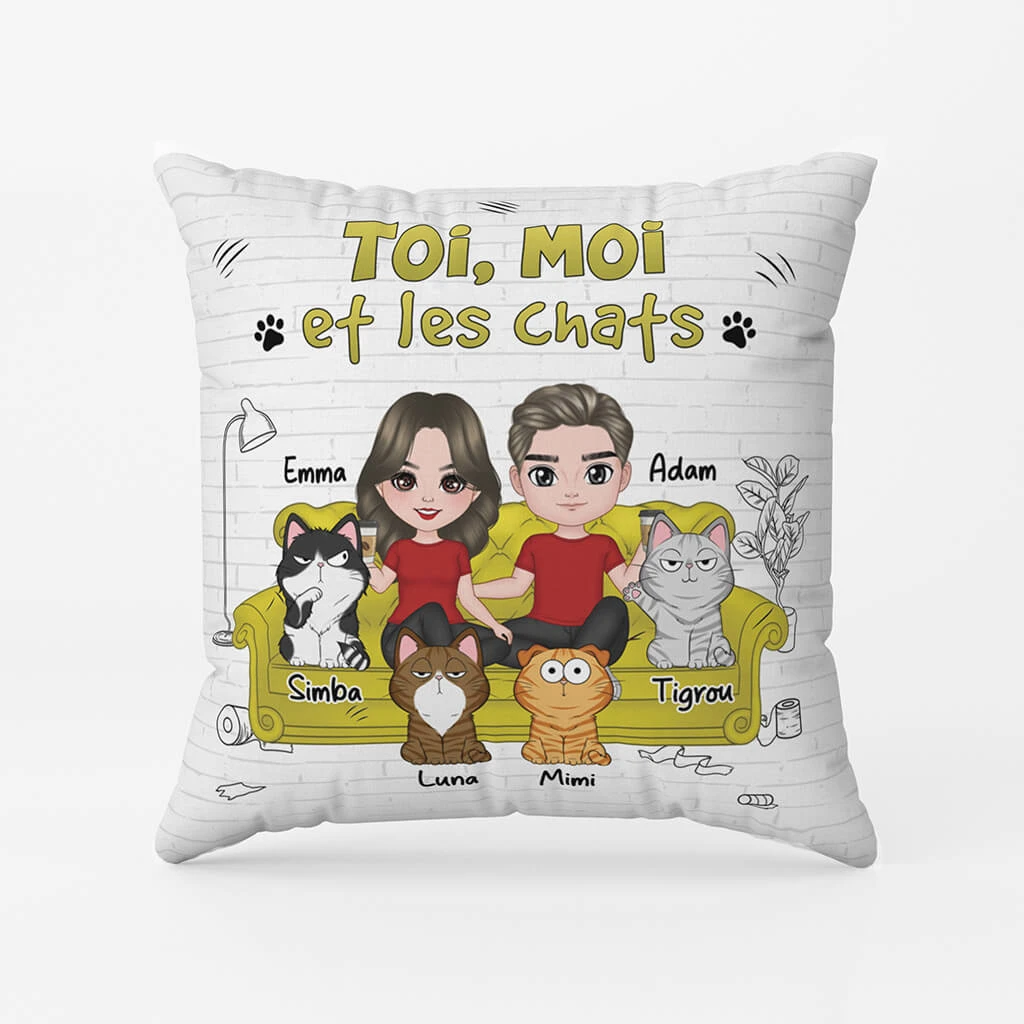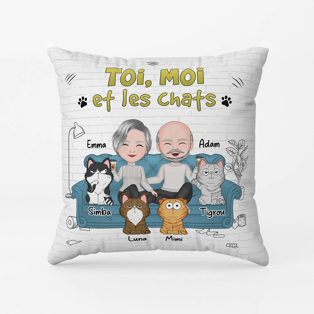 Toi & Moi Et Les Chats – Cadeau Personnalisé | Coussin Pour Amoureux Des Animaux