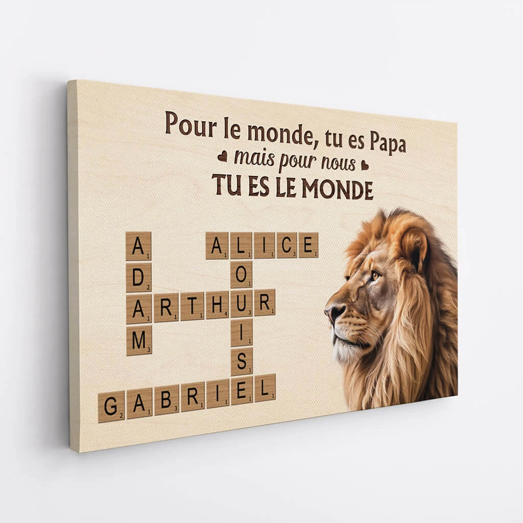 Tu Es Le Monde Version Mots Croisés Et Maman Lion – Cadeau Personnalisé | Toile Pour Maman