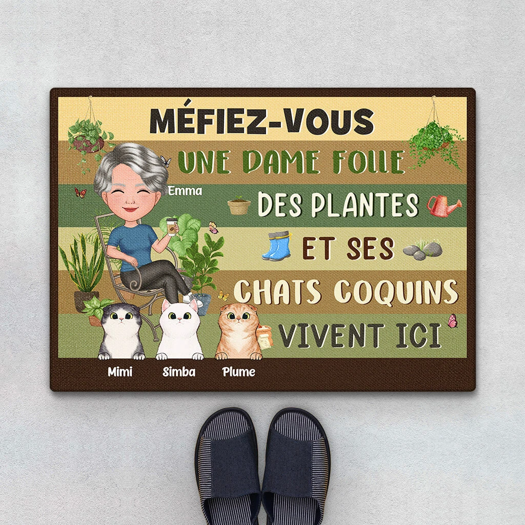 Une Dame Folle Des Plantes Et Son Chat Coquin Vivent Ici – Cadeau Personnalisé | Pallaisson Pour Femme