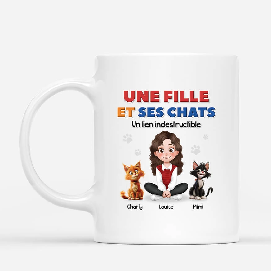 Une Fille Et Ses Chats Design Cartoon – Cadeau Personnalisé | Mug Pour Amoureux Des Animaux