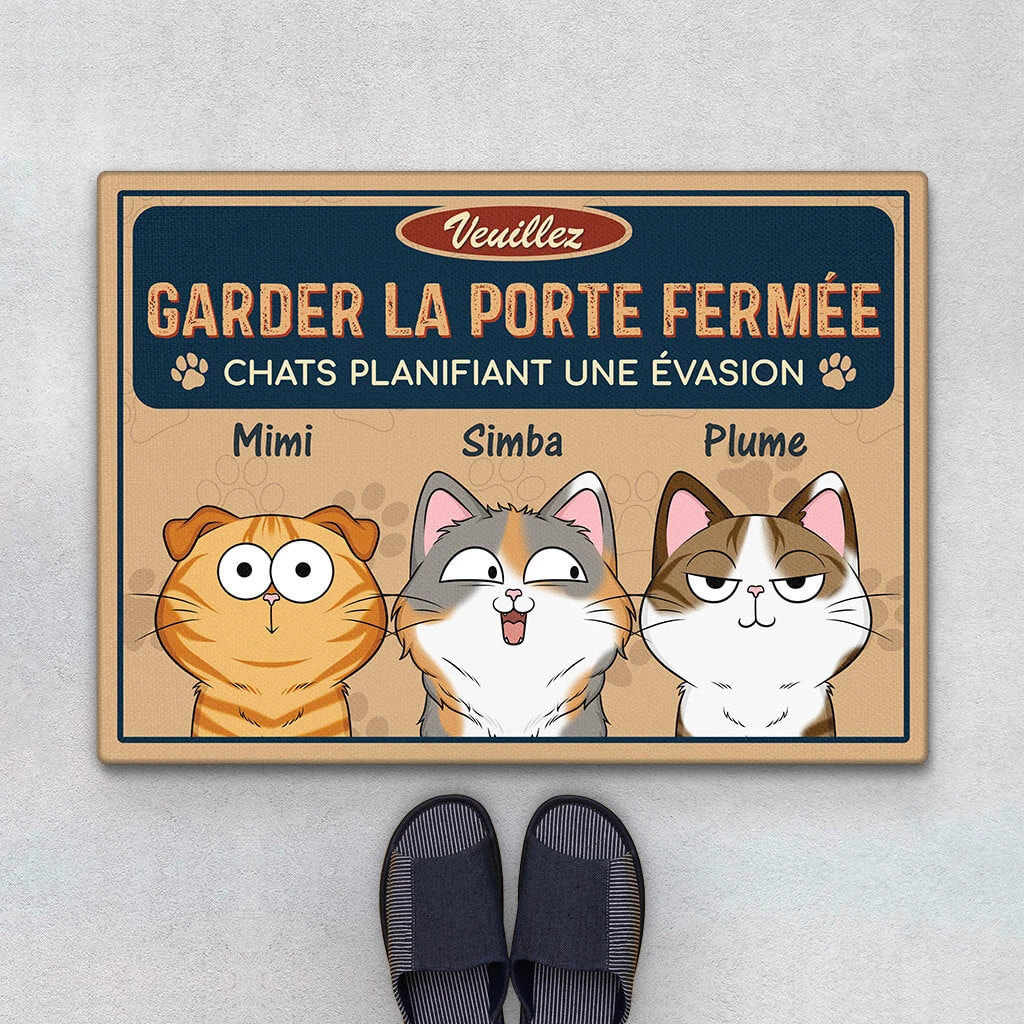 Veuillez Garder La Porte Fermée Version Chat – Cadeau Personnalisé | Paillasson Pour Amoureux Des Animaux